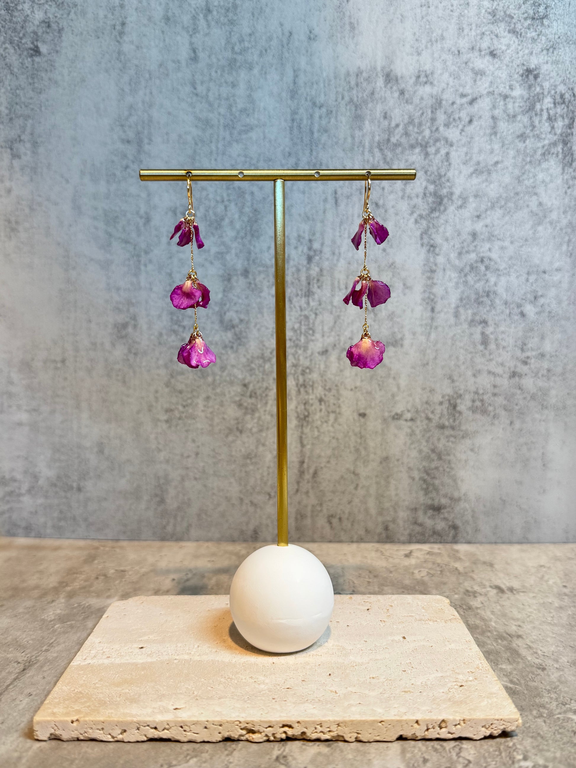 Our jewelry is made from real flowers. Due to the natural condition of the material, please note each item is unique, and the color, size and shape may vary slightly between products.