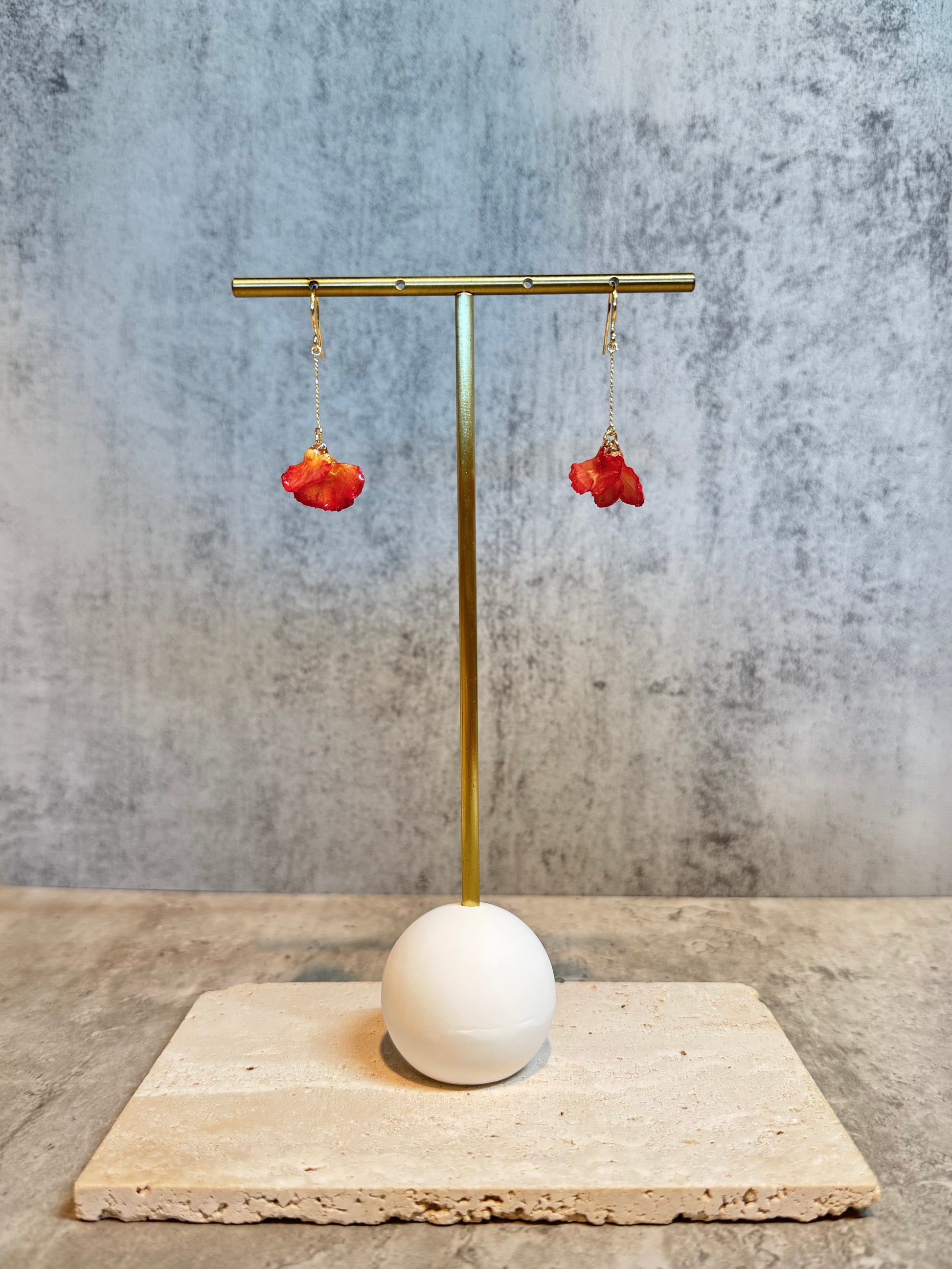 Our jewelry is made from real flowers. Due to the natural condition of the material, please note each item is unique, and the color, size and shape may vary slightly between products.