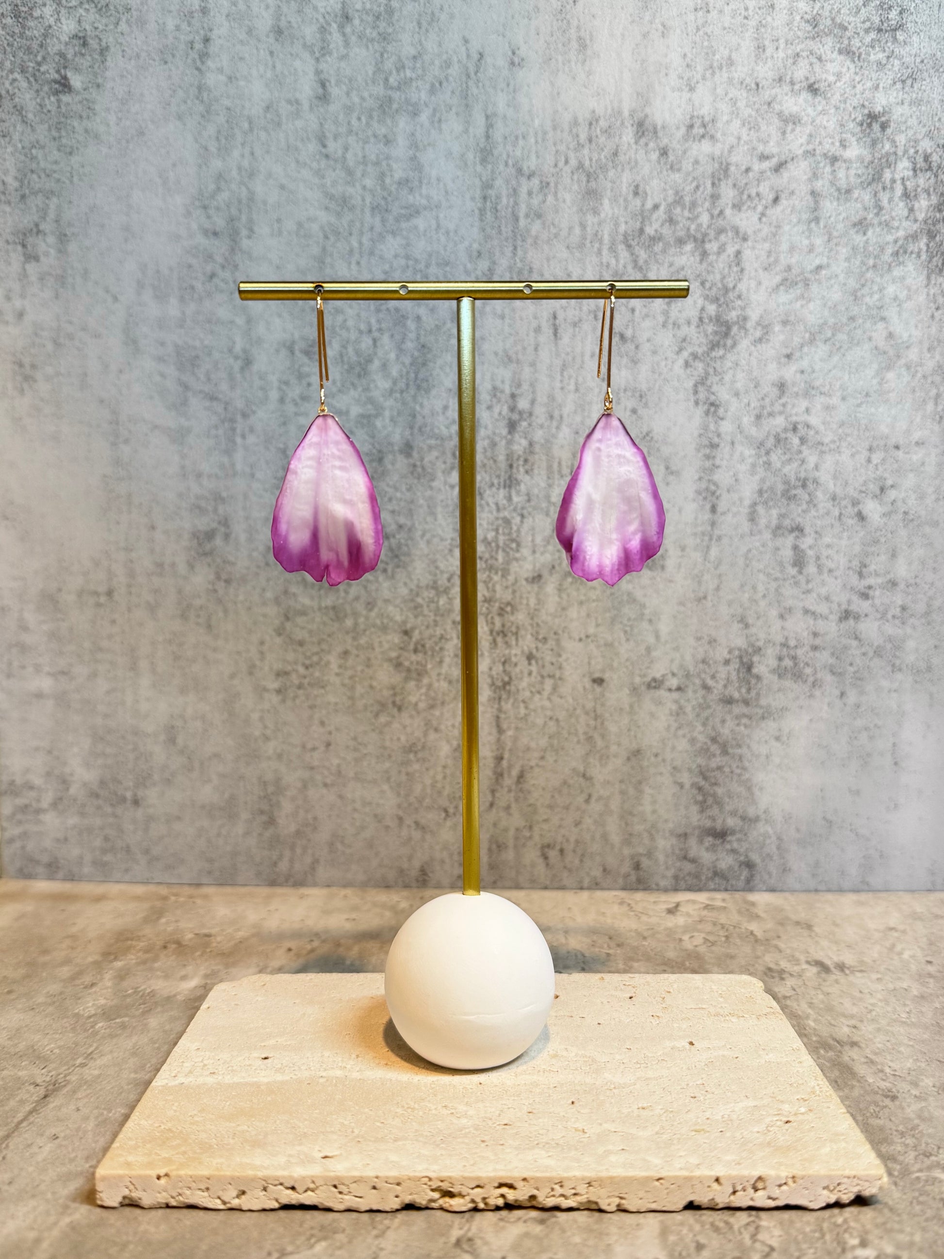 Our jewelry is made from real flowers. Due to the natural condition of the material, please note each item is unique, and the color, size and shape may vary slightly between products.
