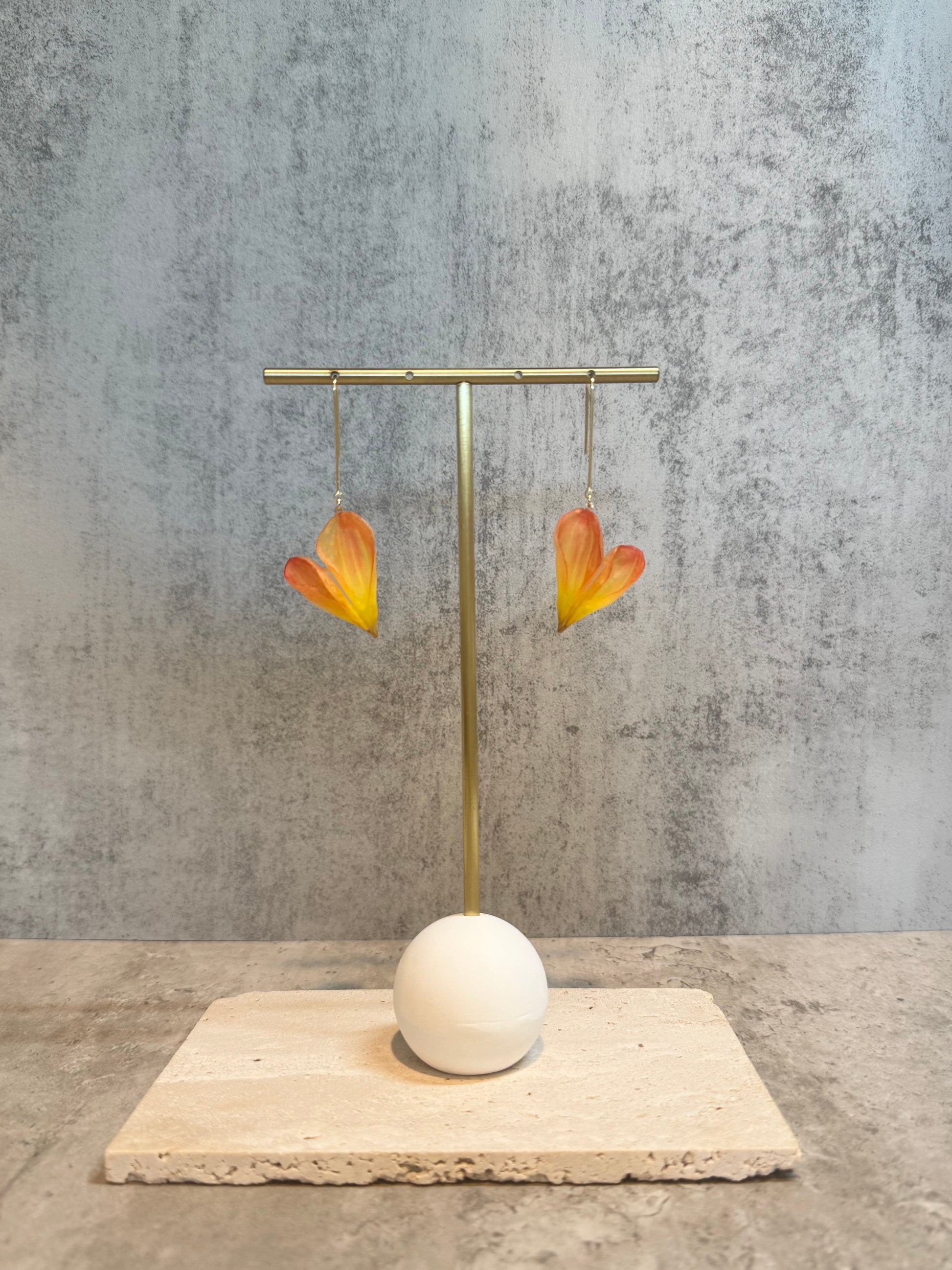 Our jewelry is made from real flowers. Due to the natural condition of the material, please note each item is unique, and the color, size and shape may vary slightly between products.