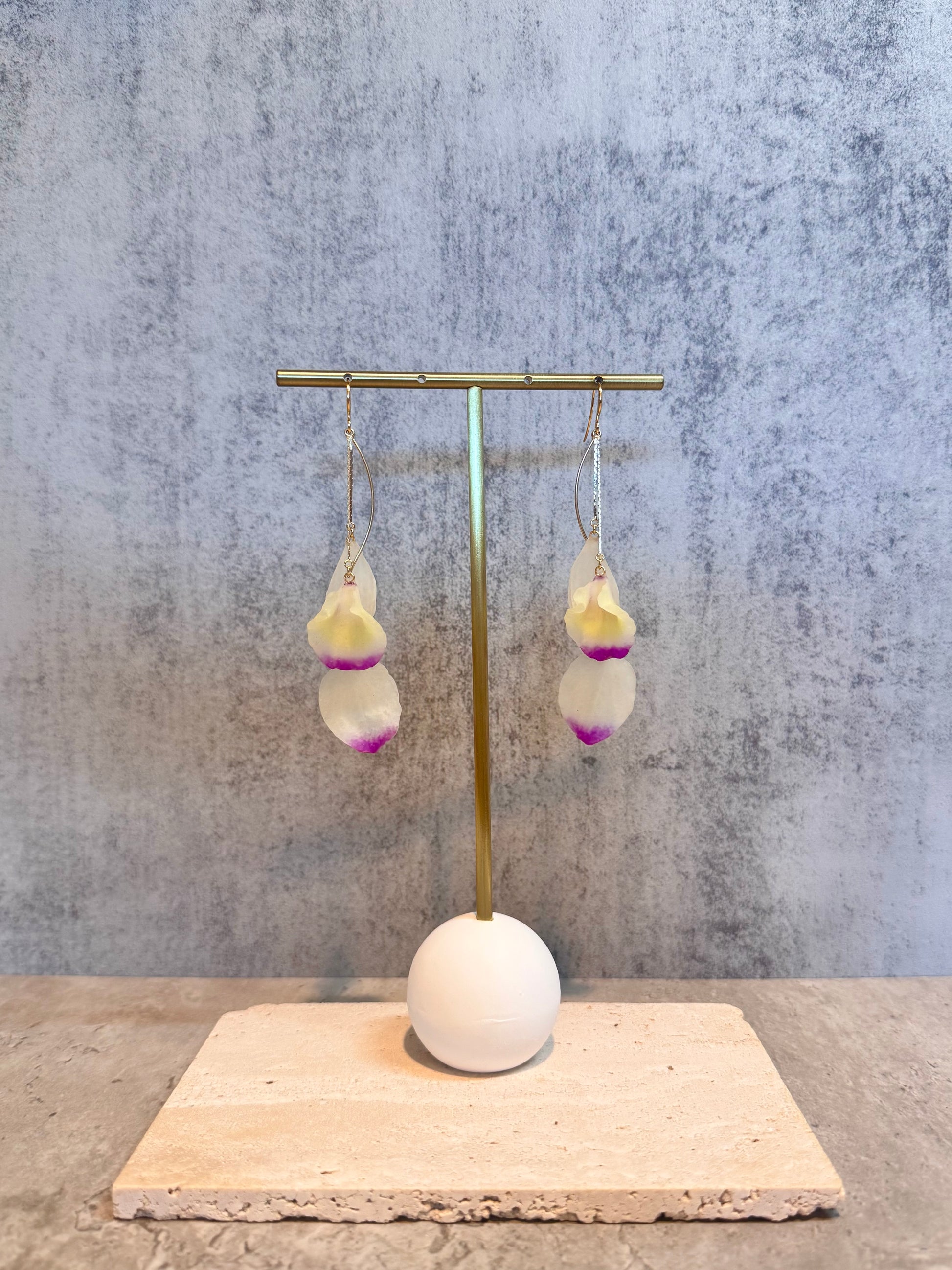 Our jewelry is made from real flowers. Due to the natural condition of the material, please note each item is unique, and the color, size and shape may vary slightly between products.