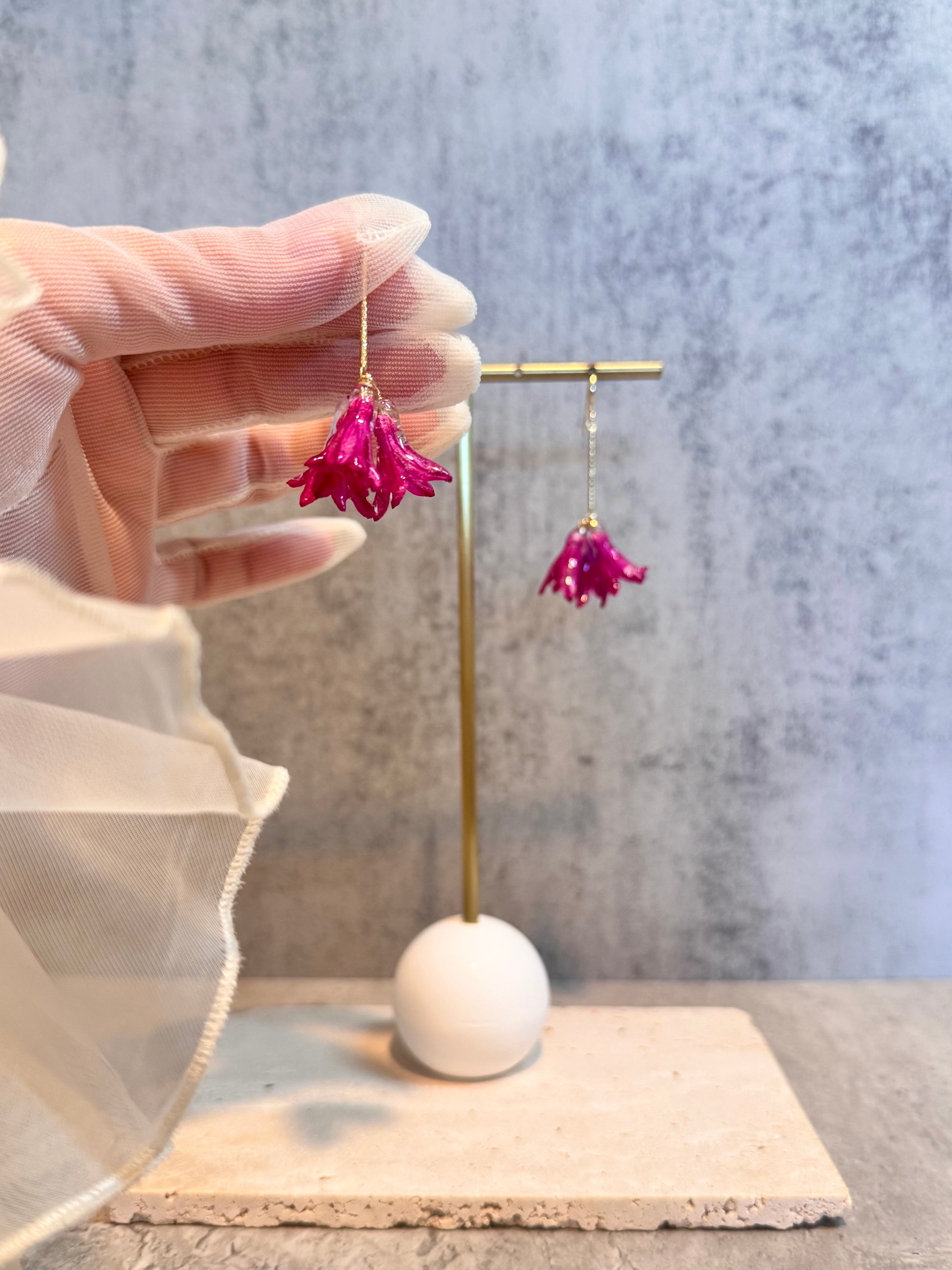 Our jewelry is made from real flowers. Due to the natural condition of the material, please note each item is unique, and the color, size and shape may vary slightly between products.