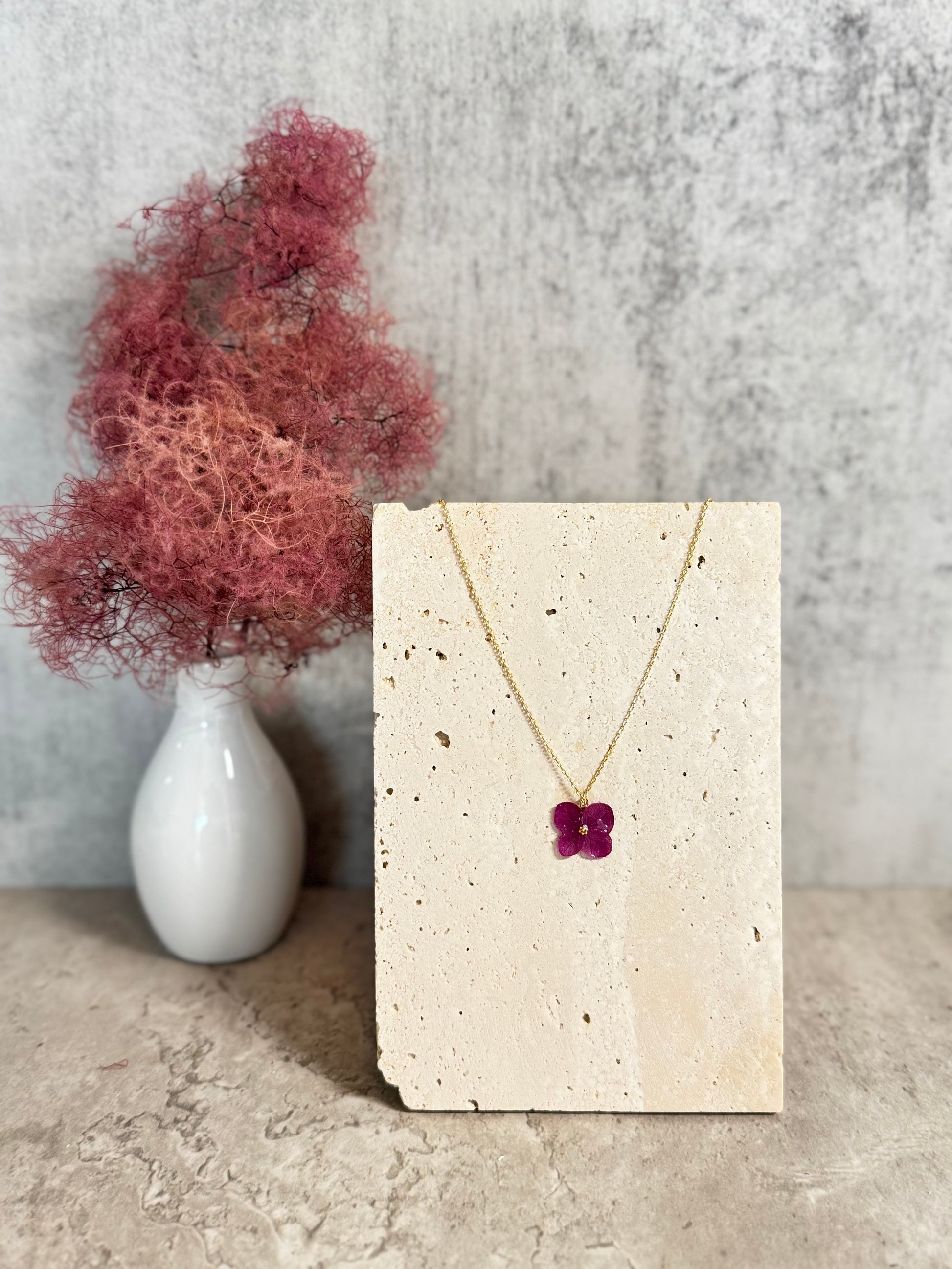 Our jewelry is made of real flowers. Due to the natural condition of the material, please note each item is unique, and the color, size and shape may vary slightly between products.