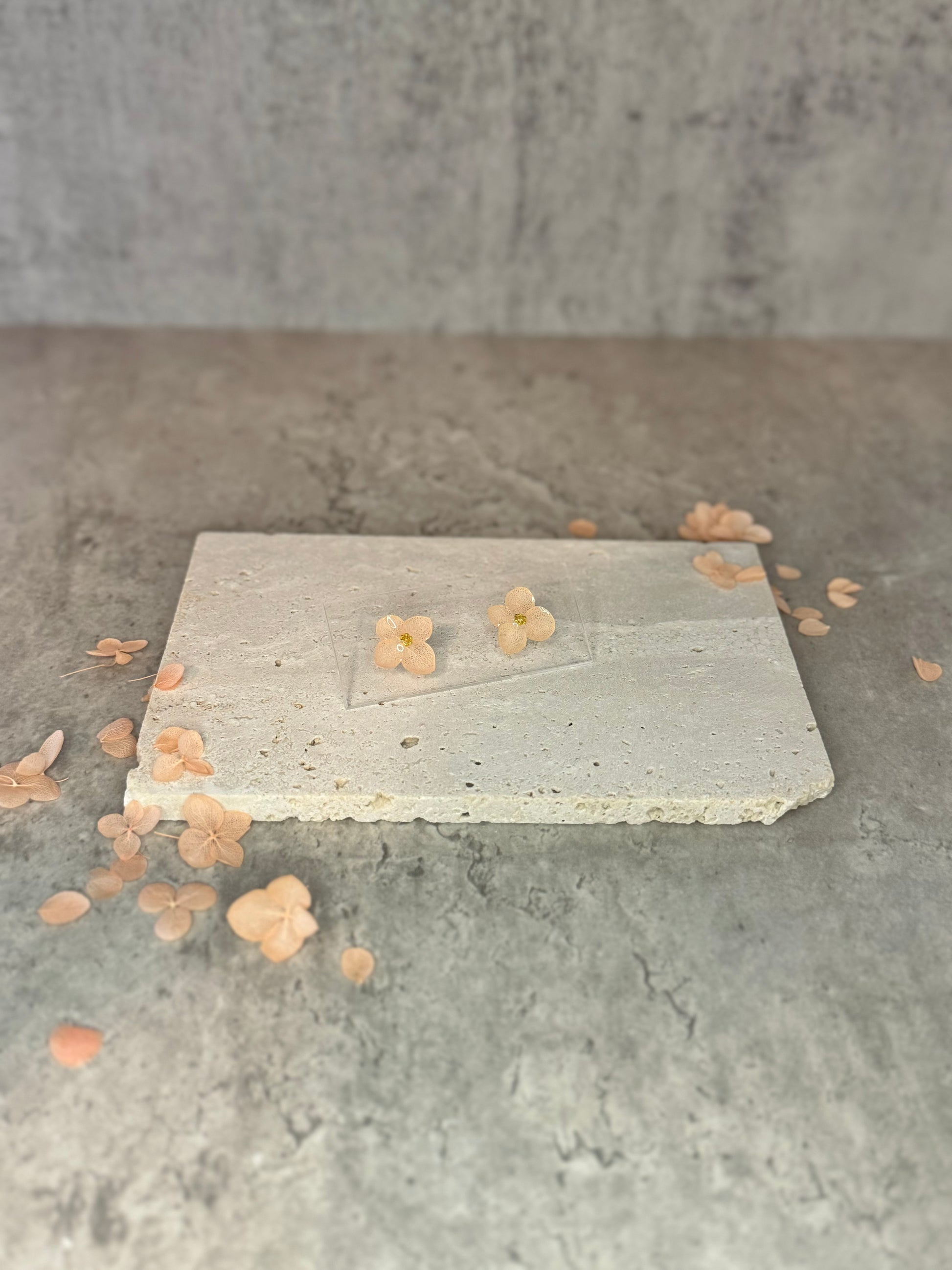 Our jewelry is made of real flowers. Due to the natural conditon of the material, please note each item is unique, and the color, size and shape may vary slightly between products.