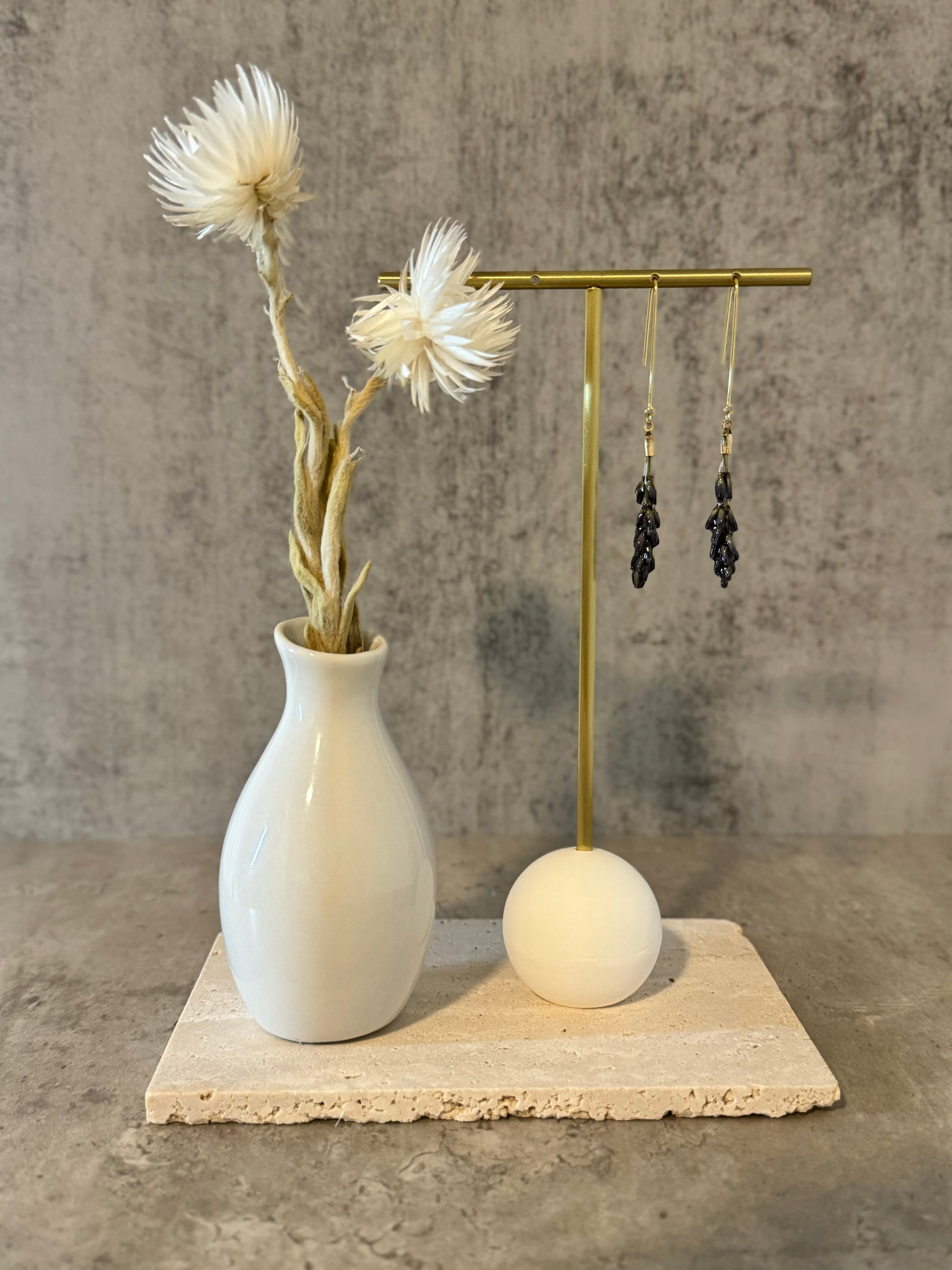 Our jewelry is made from real flowers. Due to the natural condition of the material, please note each item is unique, and the color, size and shape may vary slightly between products.