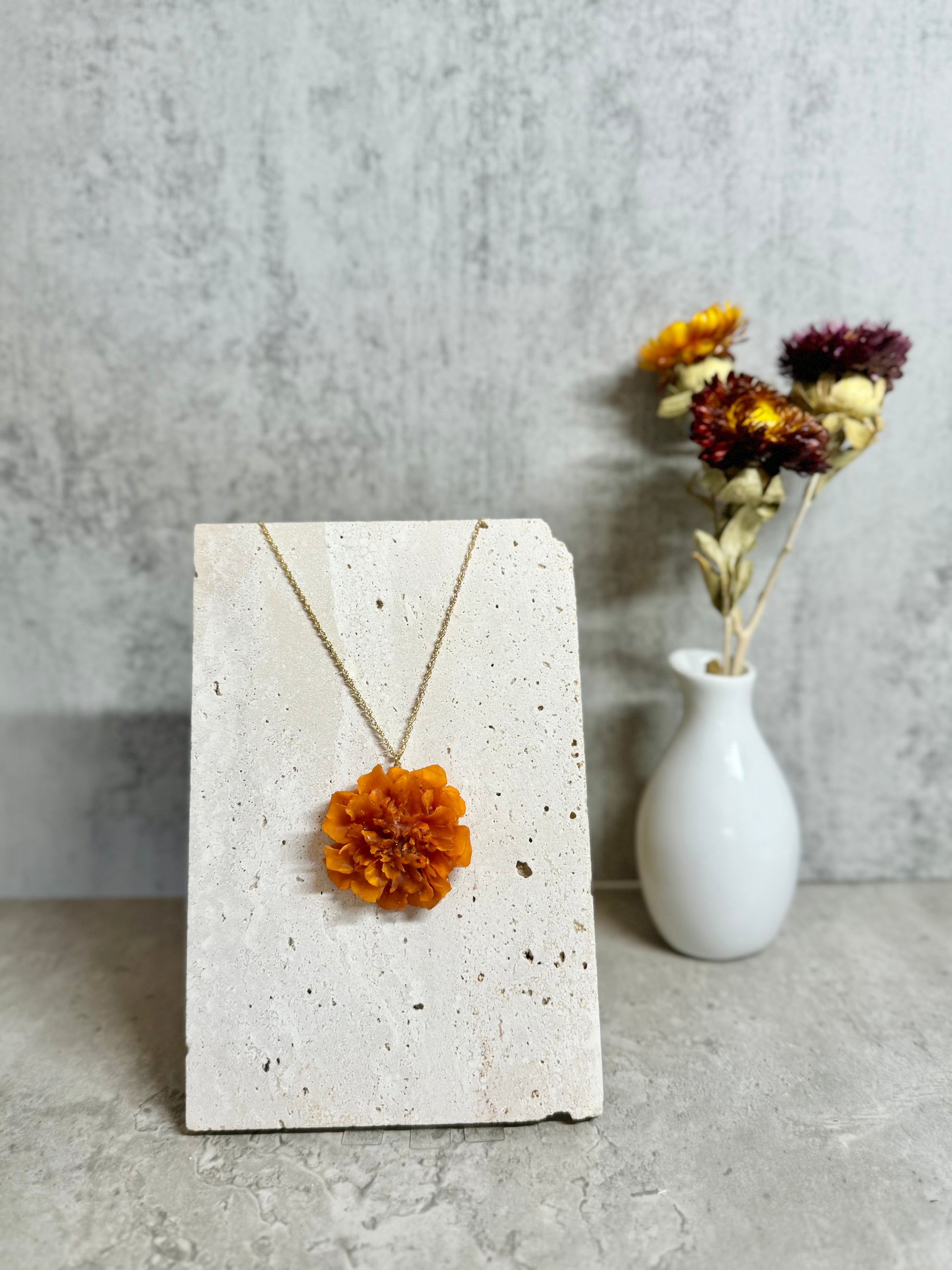 Our jewelry is made from real flowers. Due to the natural condition of the material, please note each item is unique, and the color, size and shape may vary slightly between products.