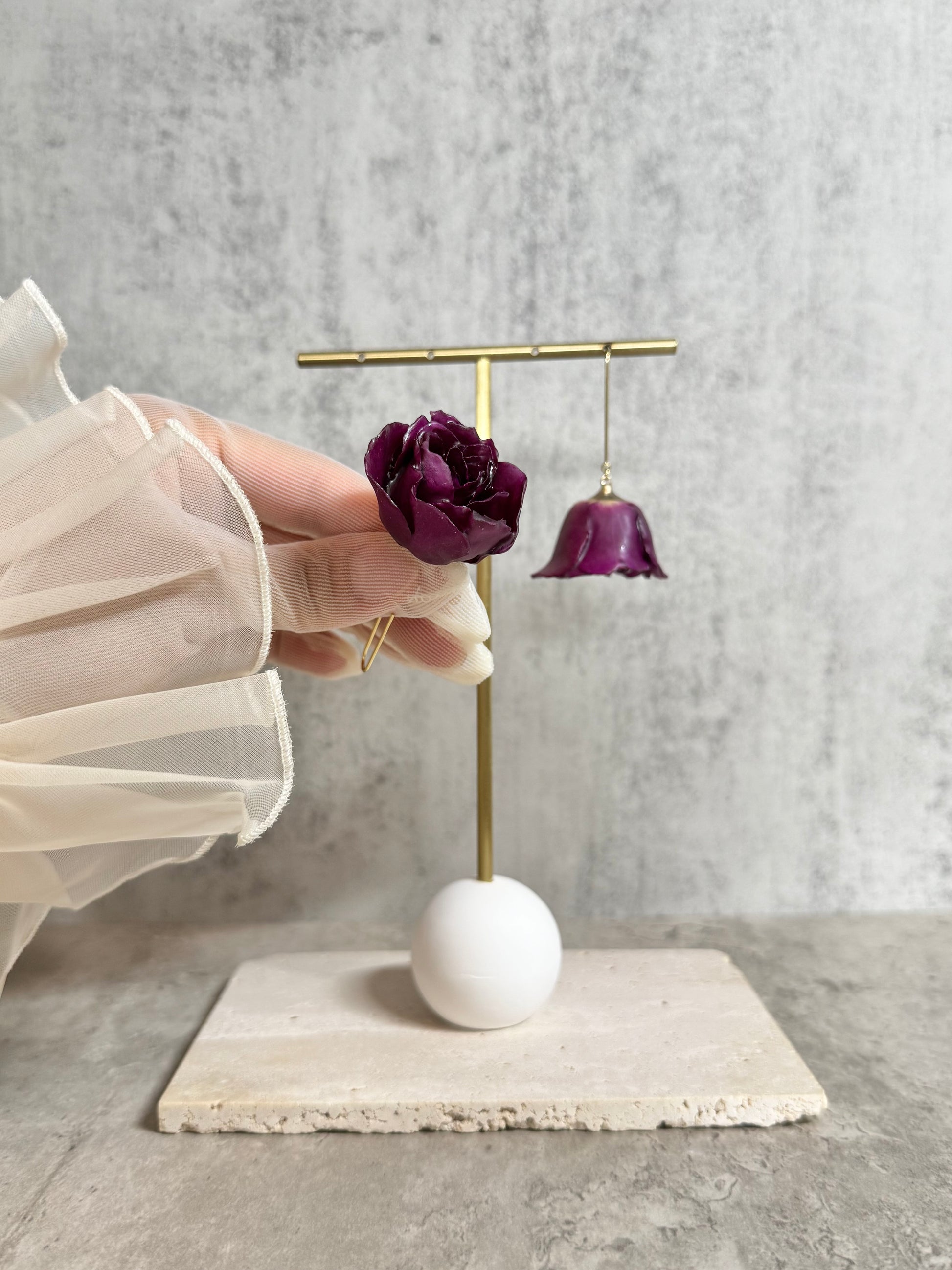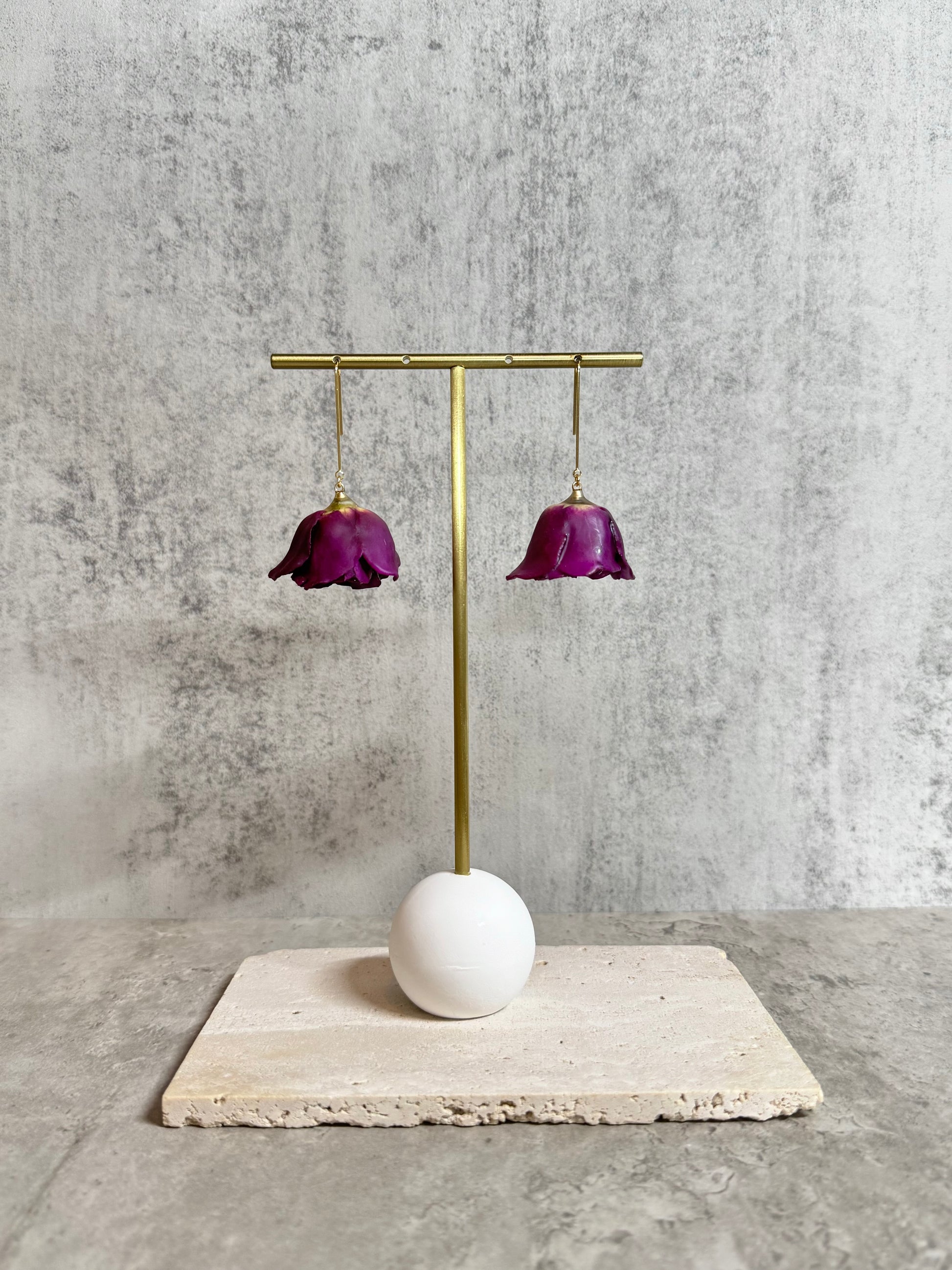Our jewelry is made from real flowers. Due to the natural condition of the material, please note each item is unique, and the color, size and shape may vary slightly between products.