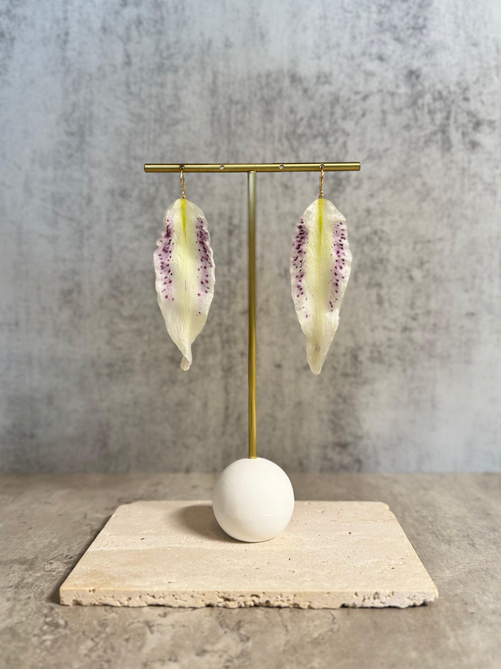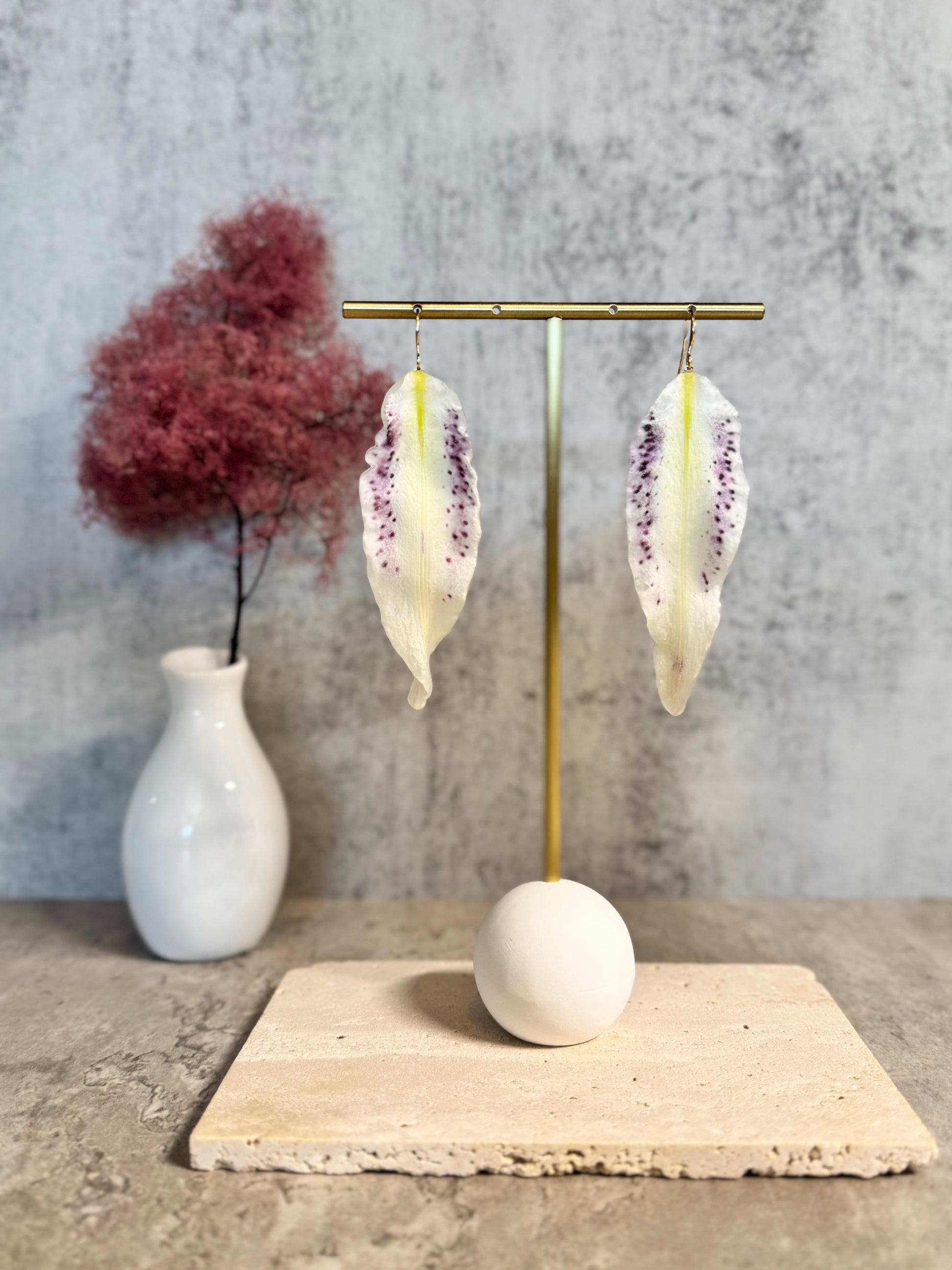 Our jewelry is made from real flowers. Due to the natural condition of the material, please note each item is unique, and the color, size and shape may vary slightly between products.